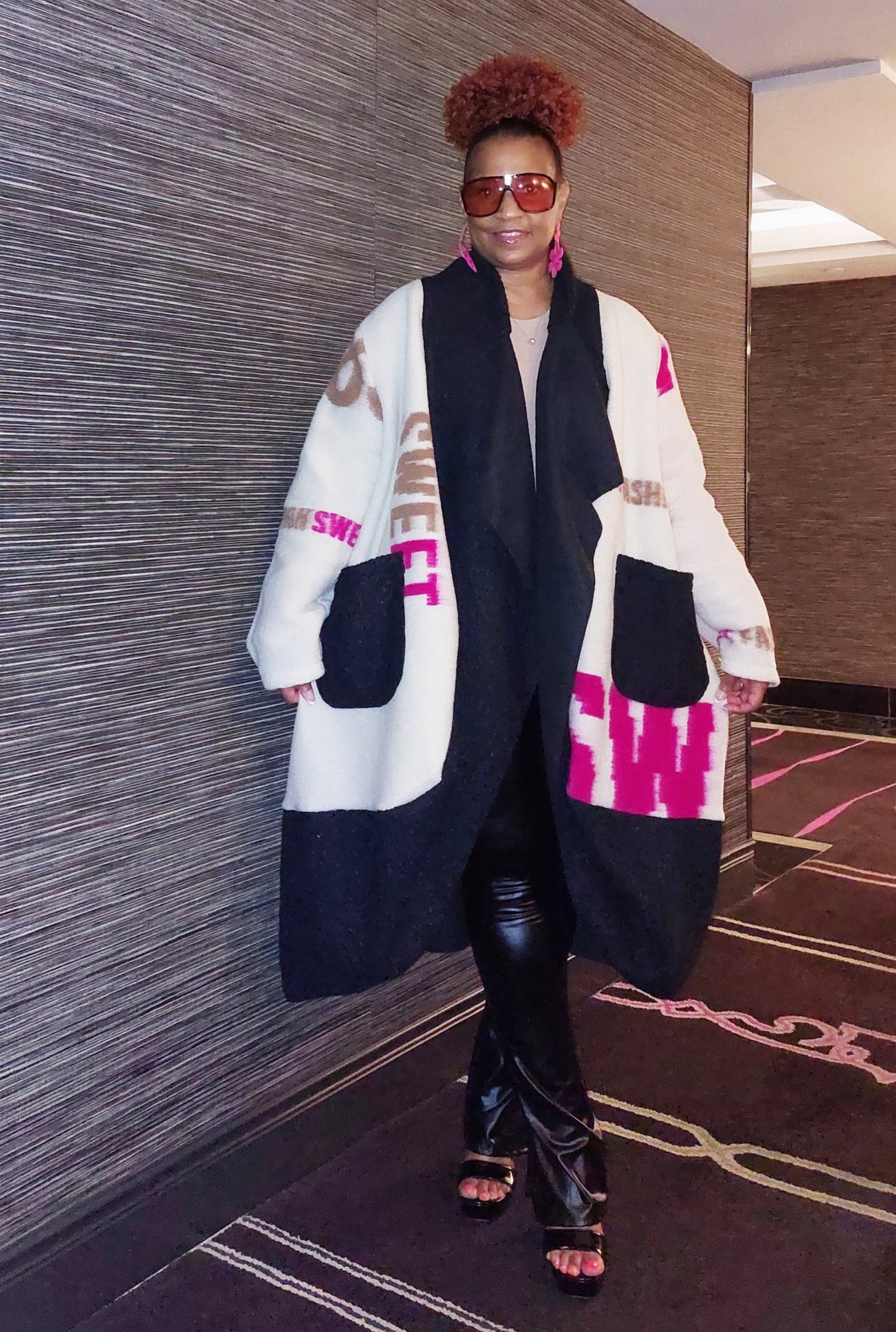 Introducing the Cocoon Cardigan Black. This vintage-inspired outerwear is perfect for cool weather. Featuring a graphic design, it is one size that fits everyone. Unwind and relax in style with this unique cardigan. Medium weight