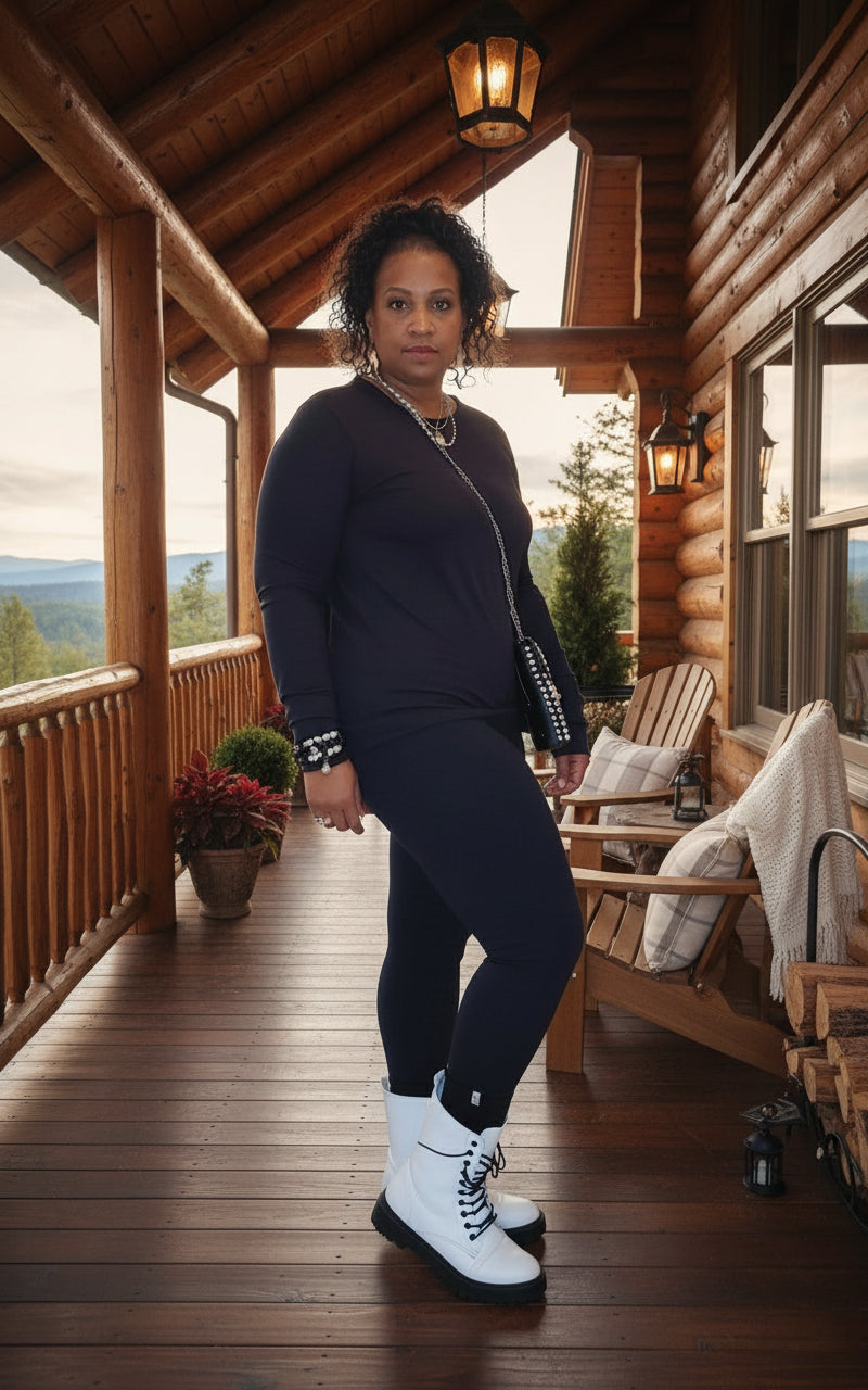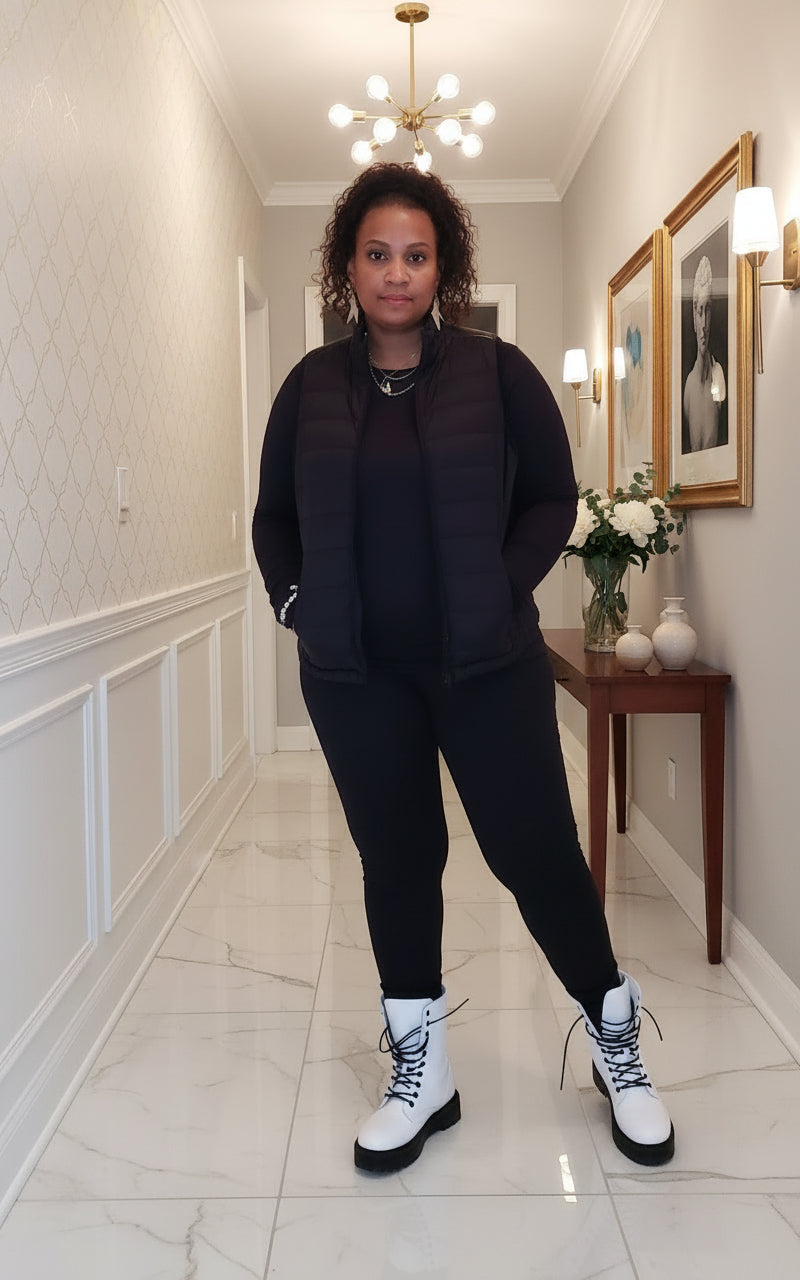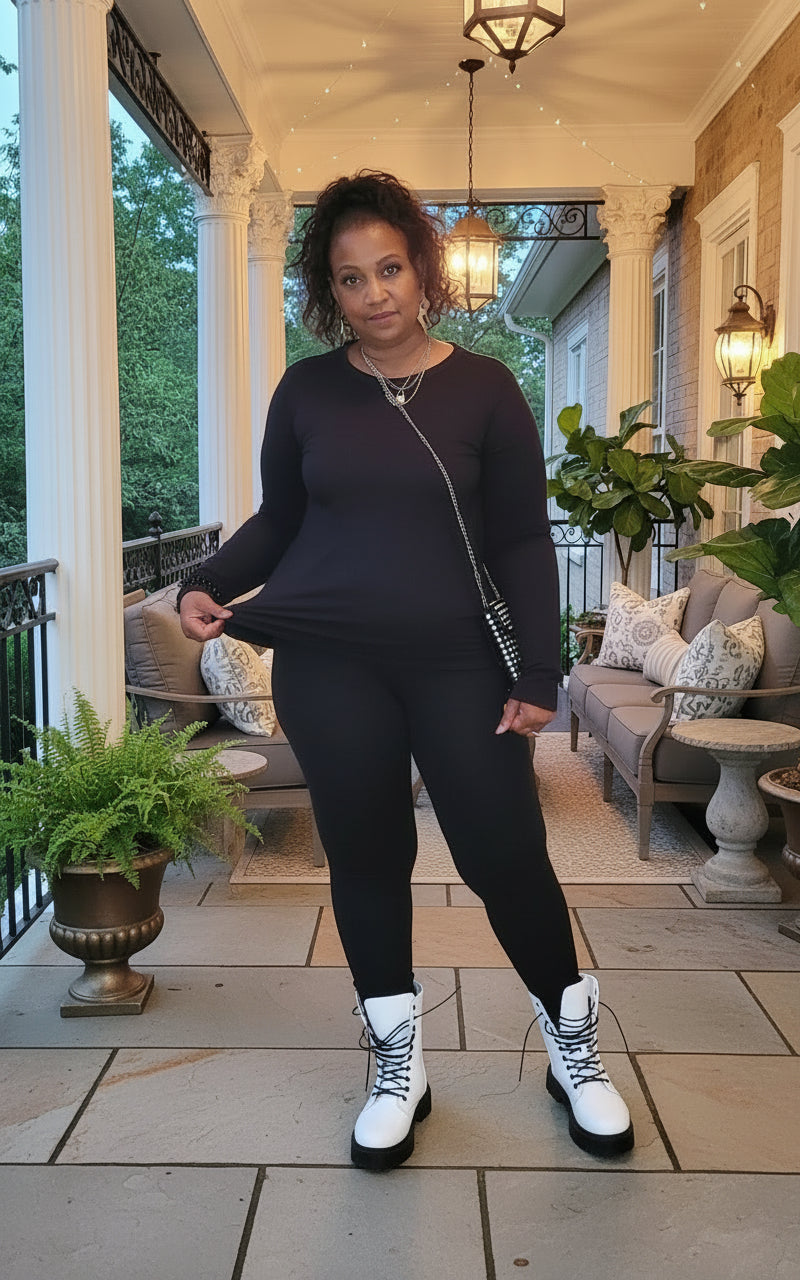 Introducing our versatile roung neck Loungewear Basic Set, perfect for any occasion. This stylish set can easily be dressed up or down and pairs perfectly with our black puffer vest. Crafted with high-quality material and plenty of stretch, giving you both comfort and style. Upgrade your wardrobe with this essential set. 90% polyester, 10% spandex light weight quilted vest sold separately